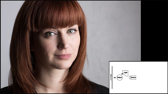 For all the shots he uses a simple 2 x 3 foot softbox with a grid.