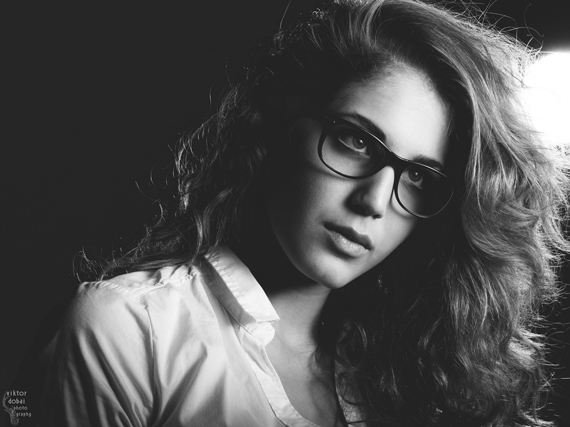 Often, photographers will use a hair light to do double duty — particularly in a situation where a model has dark hair and is in front of a dark backdrop.