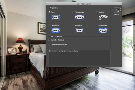 - In Photoshop, select both the layers and go to Edit> Auto-Align Layers… Select the Auto option and hit Ok. This will line up the images in case there was some slight camera movement when taking the images.